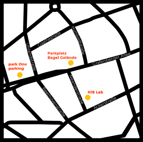 Das Lab bietet 3 Parkplätze im Hinterhof an. Diese können für 30 € pro Platz angemietet werden. Für weitere Fahrzeuge gibt es Parkplätze und Parkhäuser in Laufdistanz.